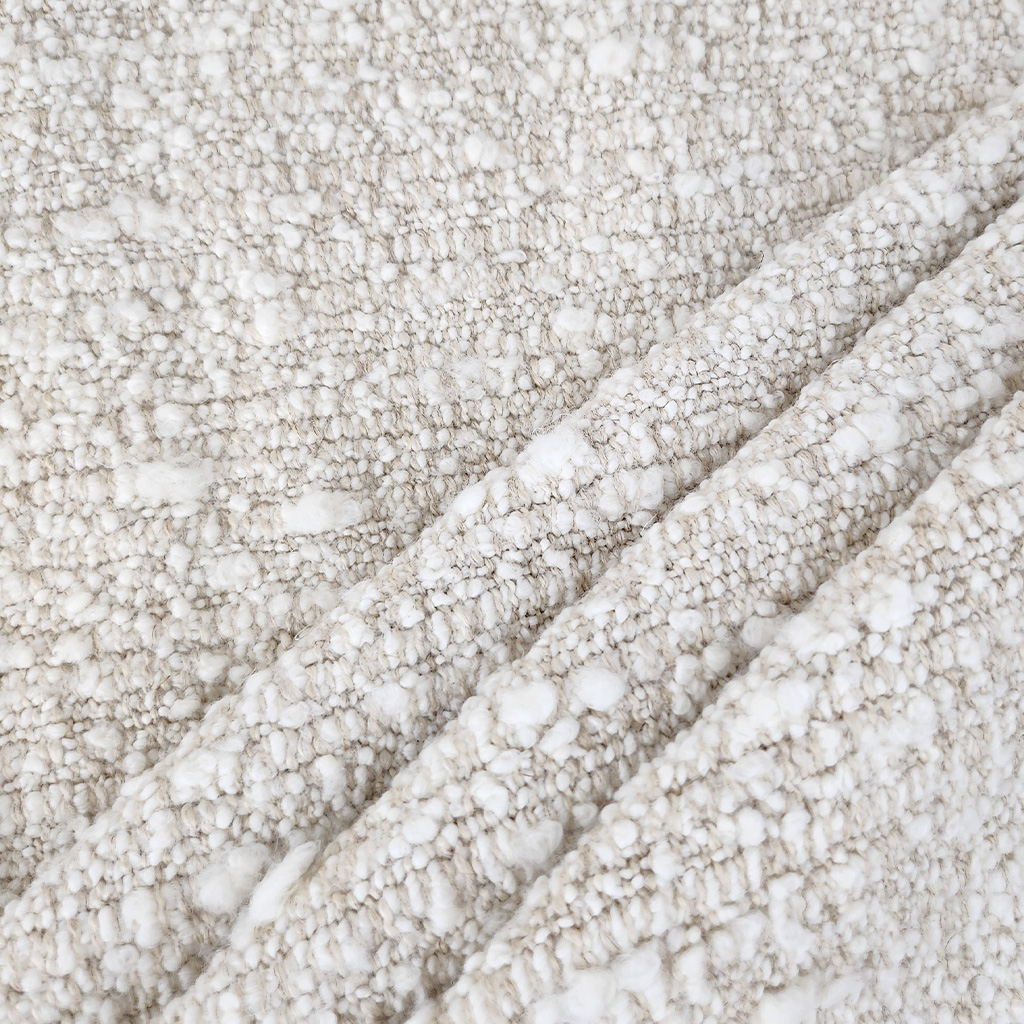 Bolton is a luxurious boucle fabric with an uneven texture created by using a mixture of tight and loose yarns.