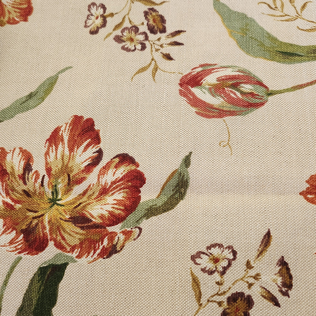 Vibrantly coloured tulips beautifully repeat on this fabric which gives it an all over feel.