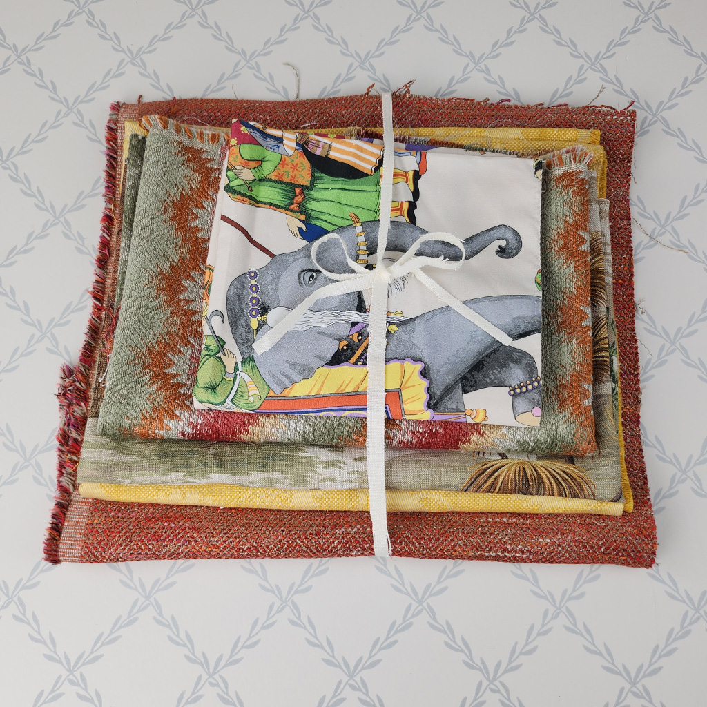 Our fabric bundles include offcuts of beautiful luxury fabrics from high-end fabric designers. Each bundle contains various sized offcuts ideal for crafts and small projects.