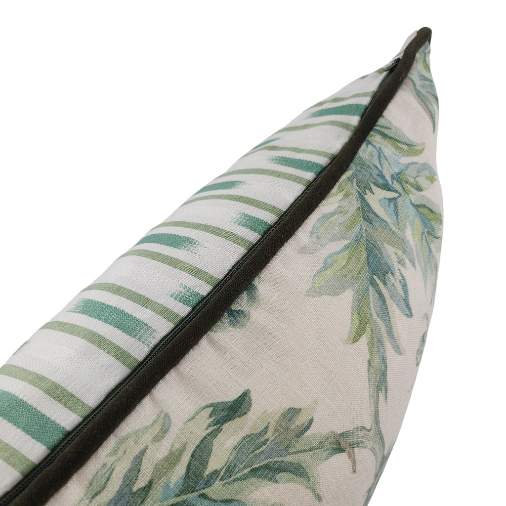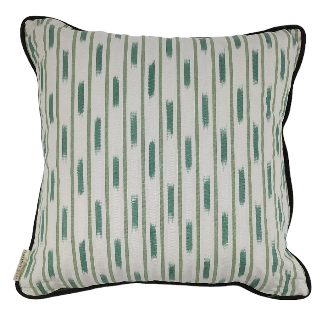 Meet Grace! We just had to design a cushion using one of our all-time favourite Colefax patterns – Artichoke! We paired this 100% linen fabric with Westbrook – a densely woven ikat stripe also by Colefax & Fowler, and a deep green velvet trim.
