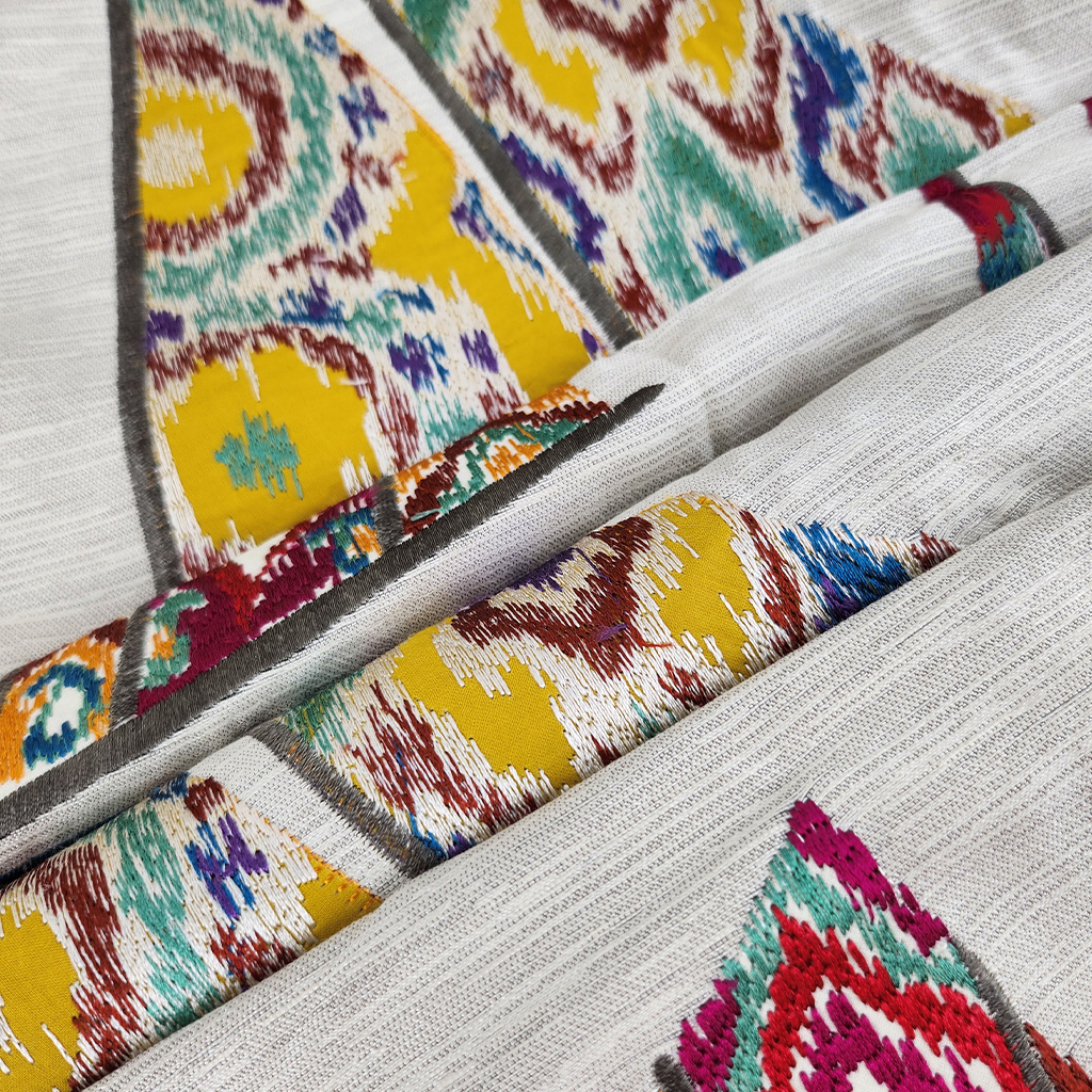 An embroidered design, this fabric offers fun and colour into an interior space.