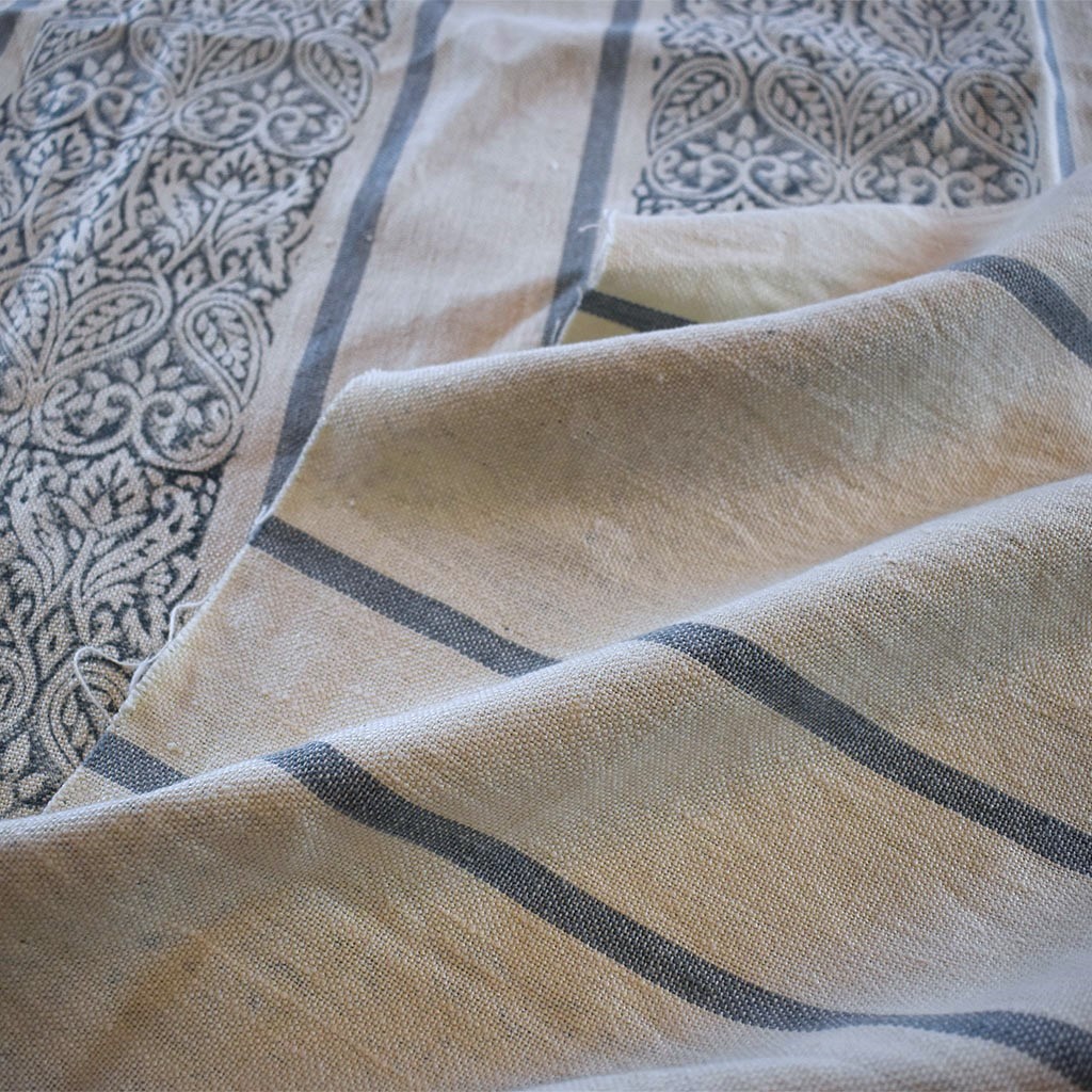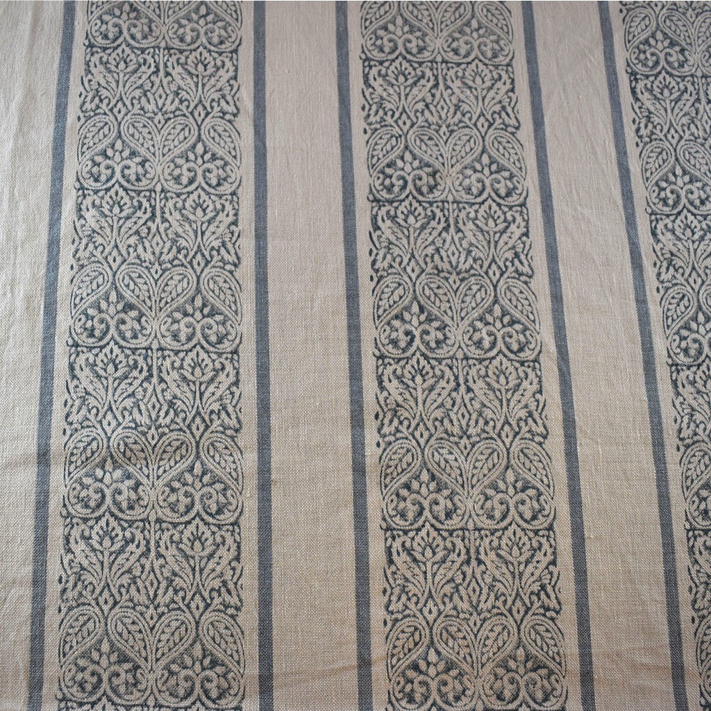 A hand blocked printed fabric suitable for curtains, blinds, headboards, cushions and upholstery.