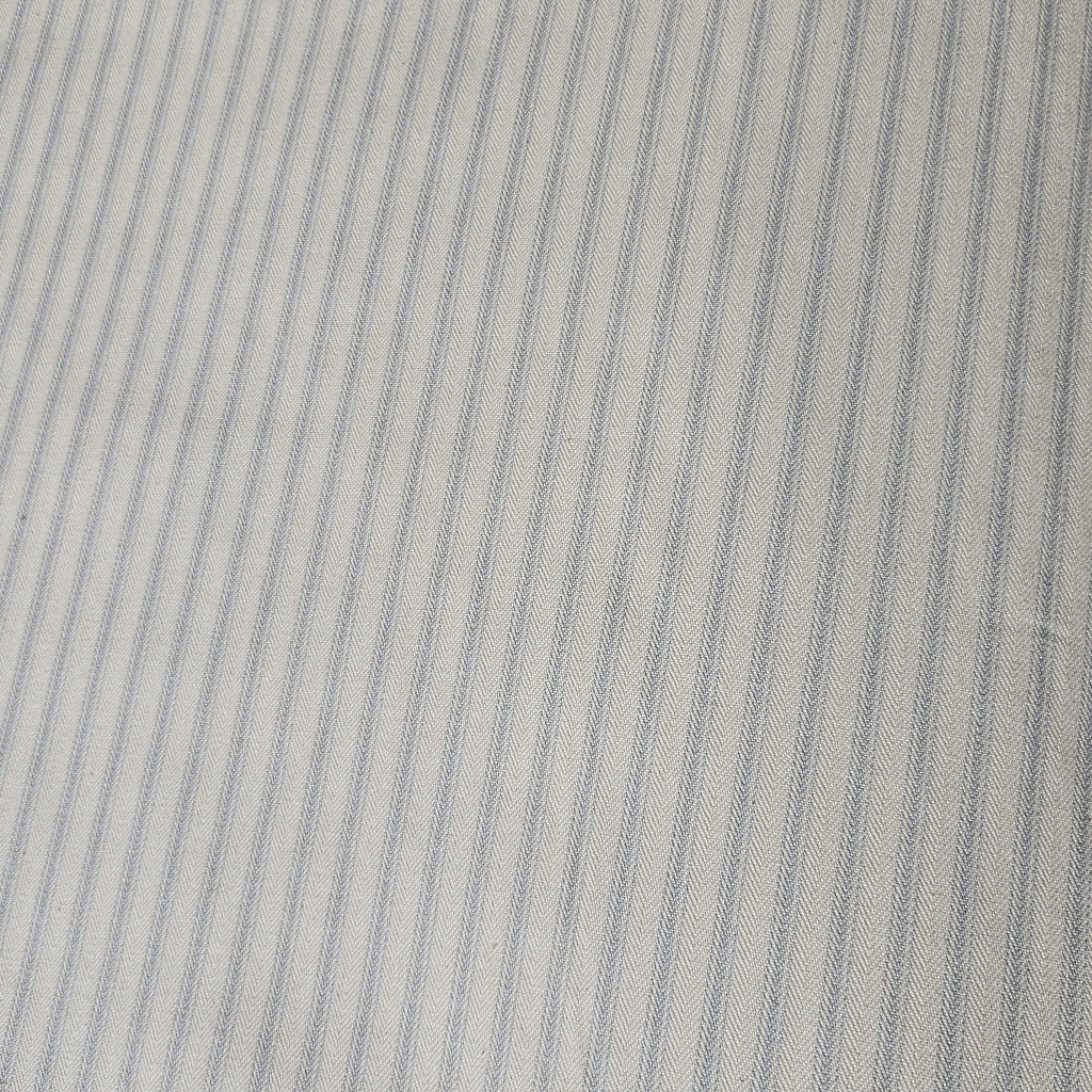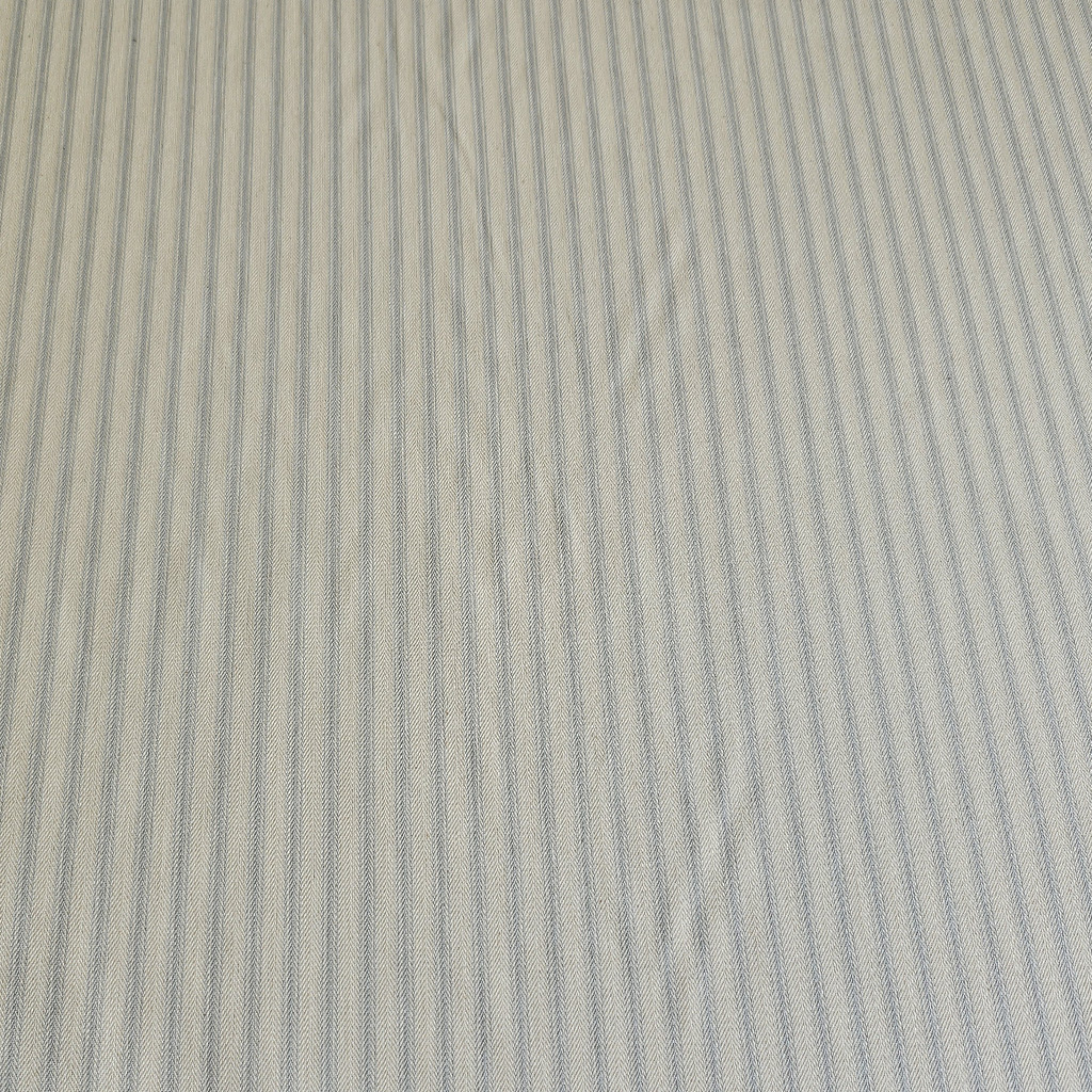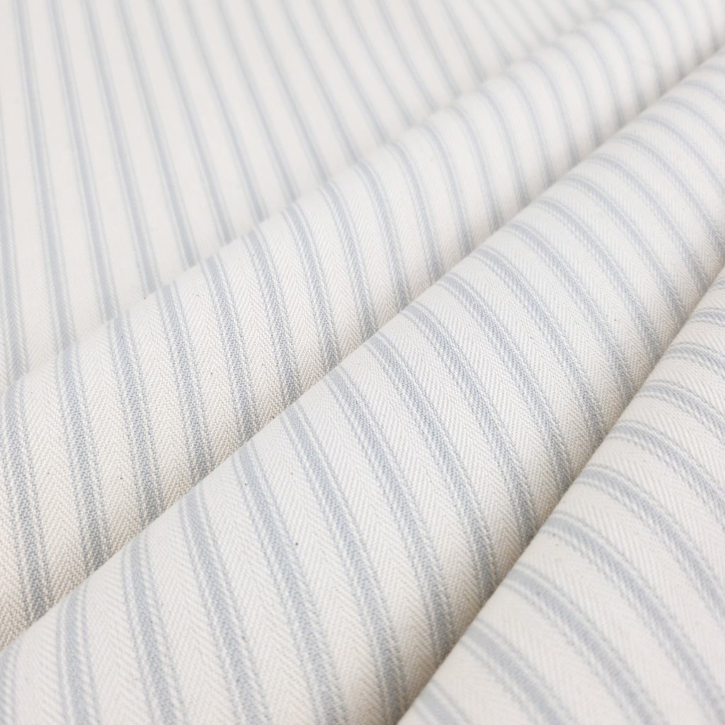 Ticking stripe is made using a dense herringbone weave, it’s a traditional stripe fabric that is durable and is a gentle grey with warm white tones.