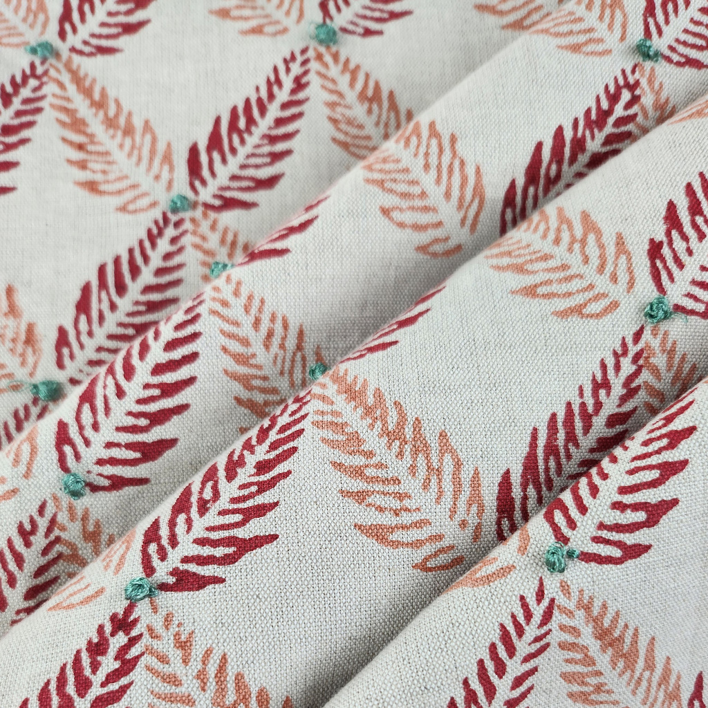 Knot Garden is a modern, fresh summery design. Inspired by the symmetry of Tudor garden design. This fabric is hand blocked with a hand stitched French knot detail.