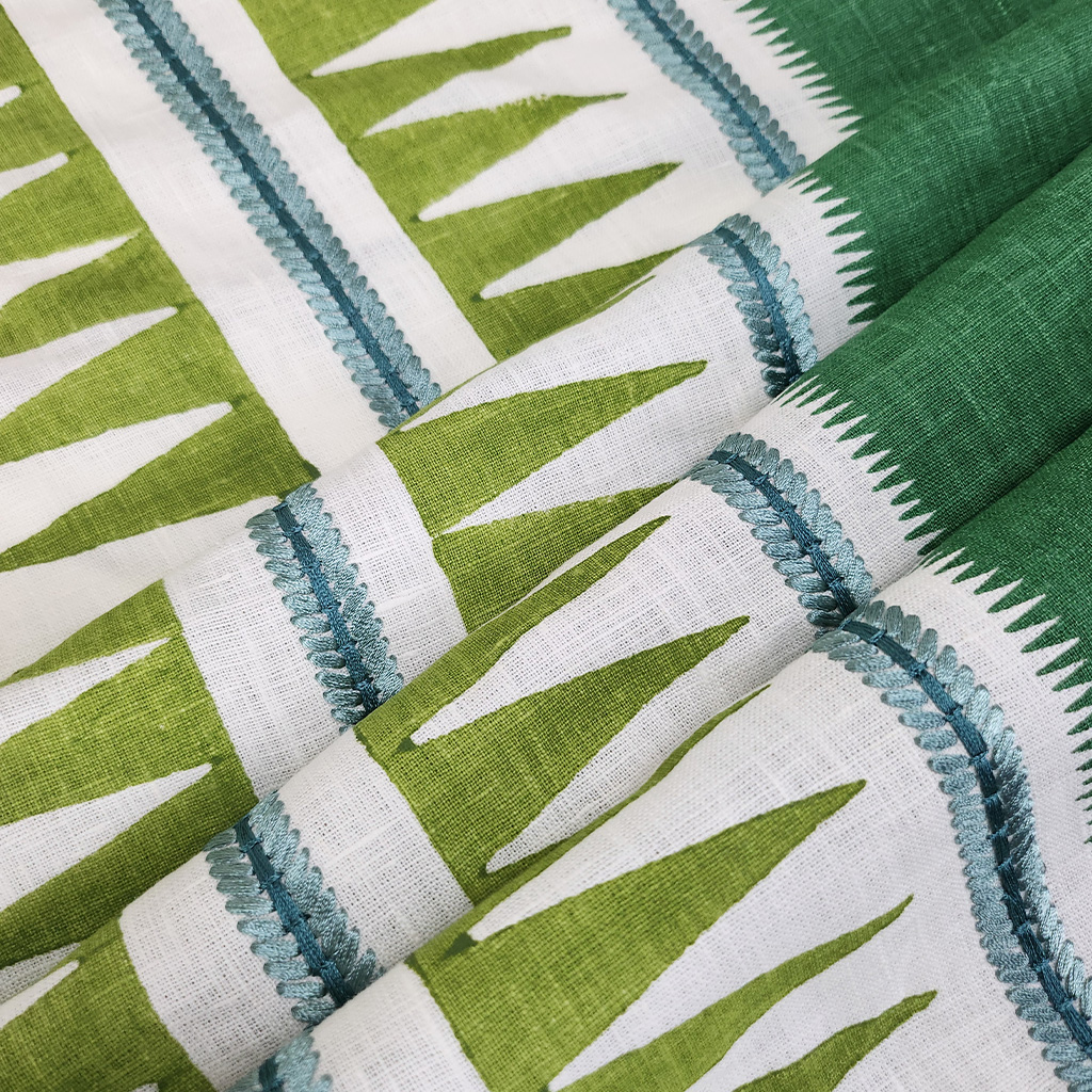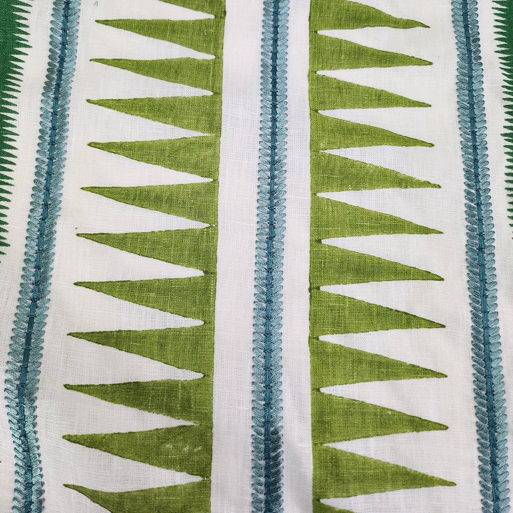 Kasper fabric is a striking geometric design featuring bold zig-zag stripes and textured detailing.