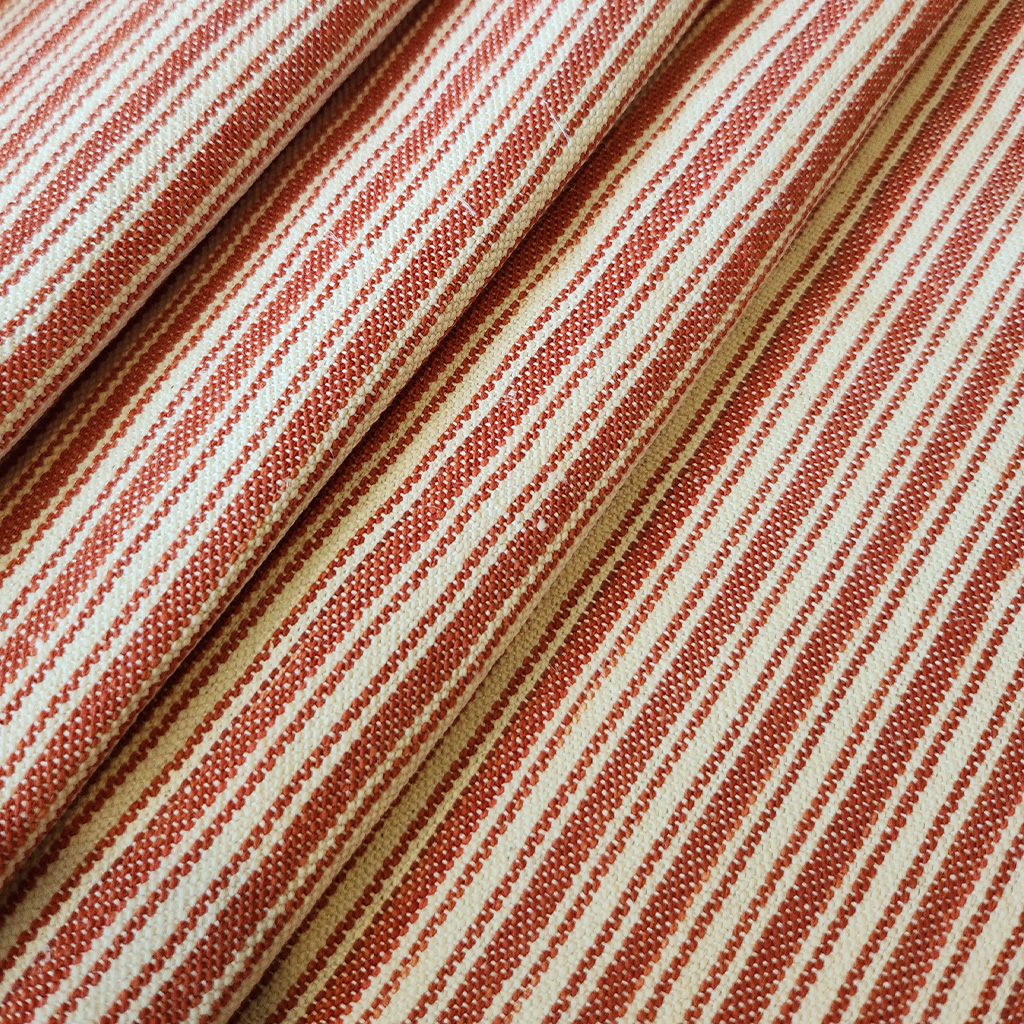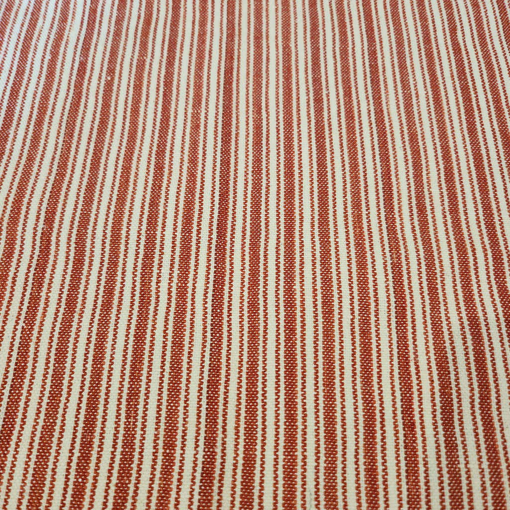 A rusty ticking stripe on a slubby back cloth.