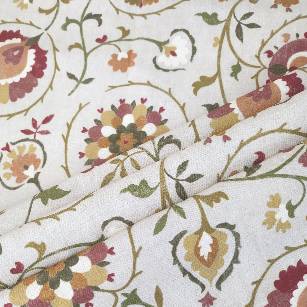 This versatile, floral pattern is printed on responsibly sourced cotton, with a rich combination of earthy colours.
