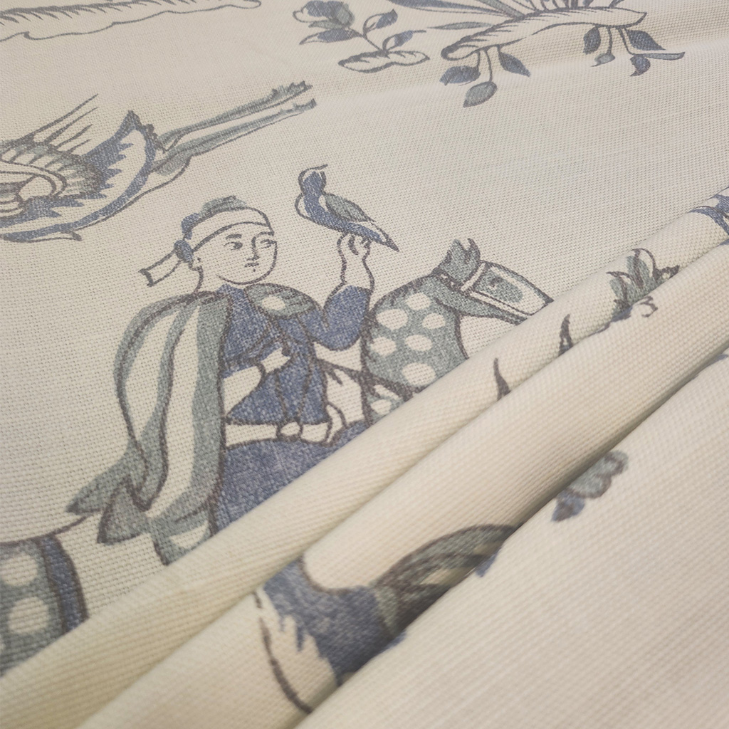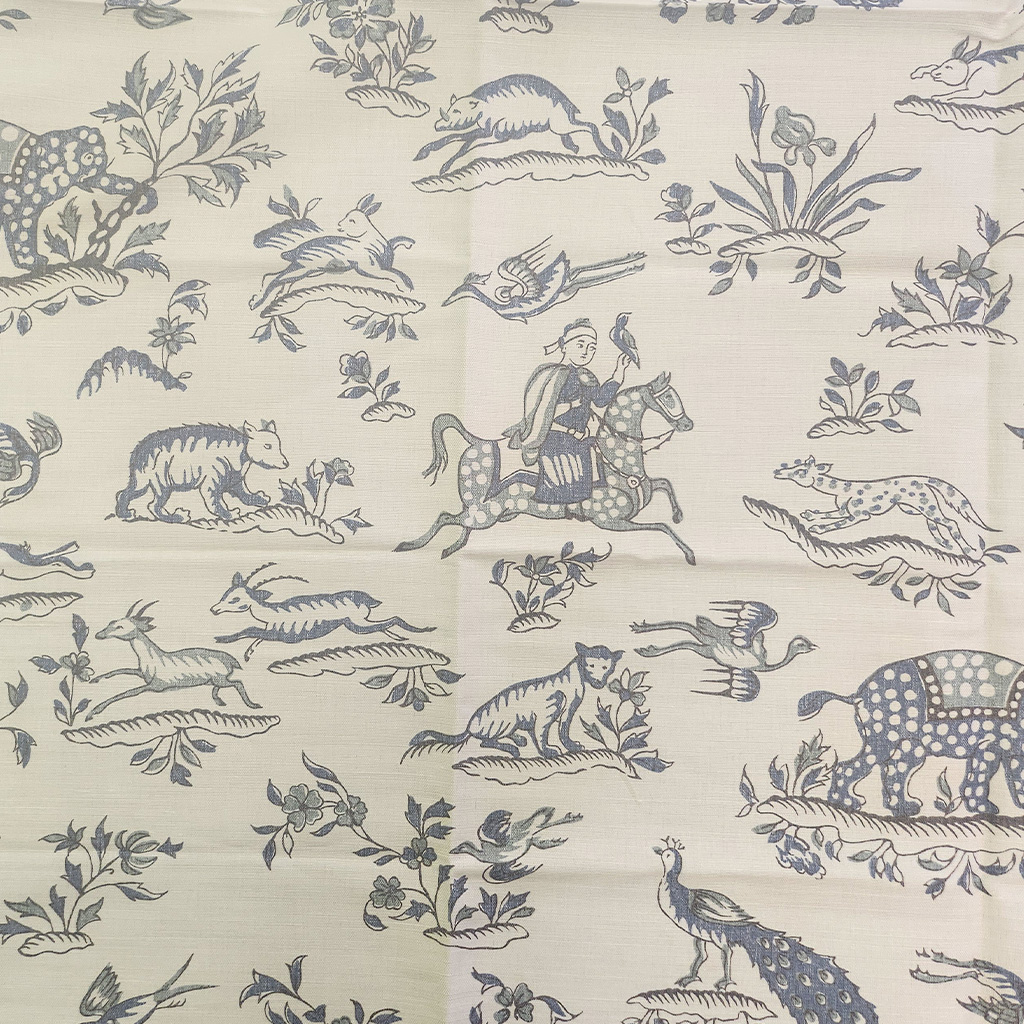 A whimsical print with wild animals leaping in enchanting scenes, inspired by an old Indian woodblock print.